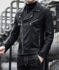 Men’s Youth Motorcycle Leather Jacket — Lapel Stylish Biker Coat