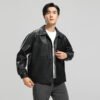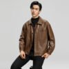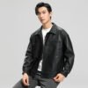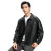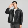 Ride in style with this men’s youth motorcycle leather jacket , featuring a sleek lapel design and dimensional patch pockets . Made from durable PU leather with a soft polyester lining , it offers a lightly mature, stylish look perfect for casual or riding wear.